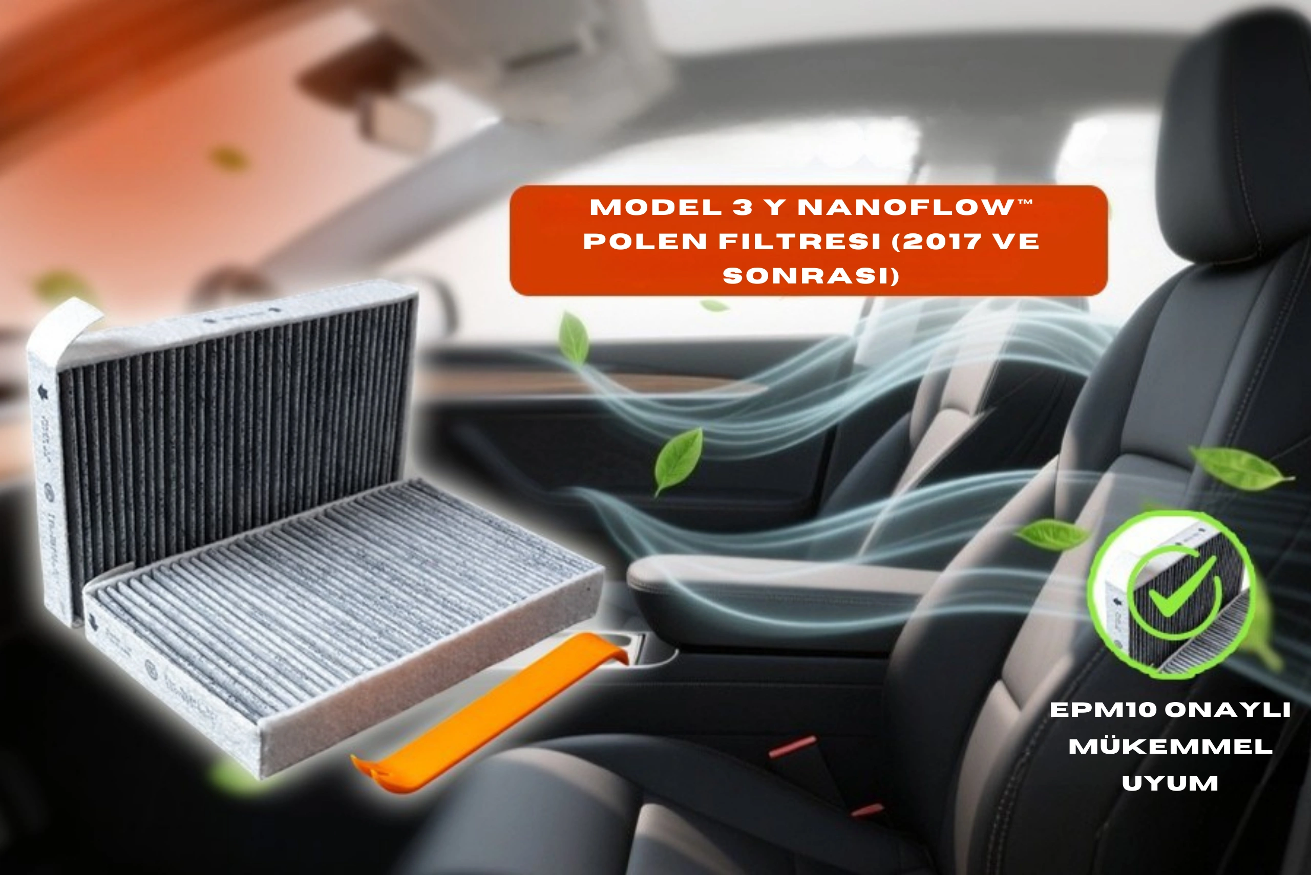 Tesla Model 3 ve Model Y araçlarınız için özel olarak geliştirdiğimiz Tesla Model 3 Y ePM10 Polen Filtresi, ePM10 sertifikalı NanoFlow™ teknolojisiyle kabin hava kalitesini en üst seviyeye taşır. Üstelik yüksek performanslı bu filtrasyon sistemi; polen, yol tozu ve zararlı mikro partikülleri süzerek sürücü ve yolculara ferah bir ortam sağlar.