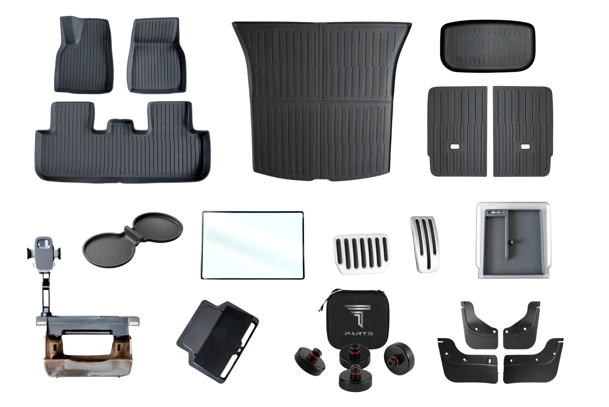 - Tesla Lift Takozu (4’lü Set): Taşıma çantalı, servis ve lastik değişimlerinde batarya güvenliği için kritik öneme sahip yüksek mukavemetli padler.