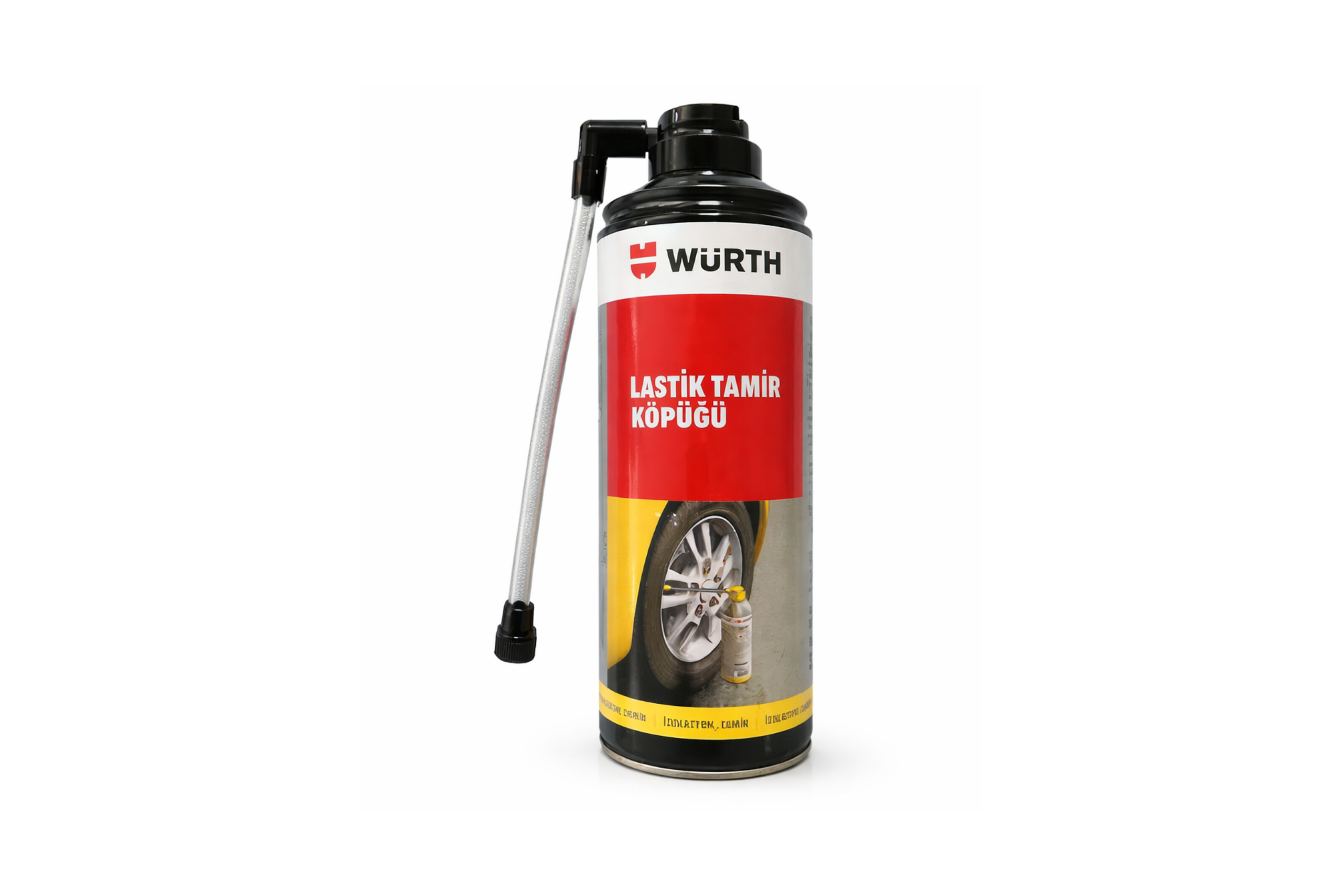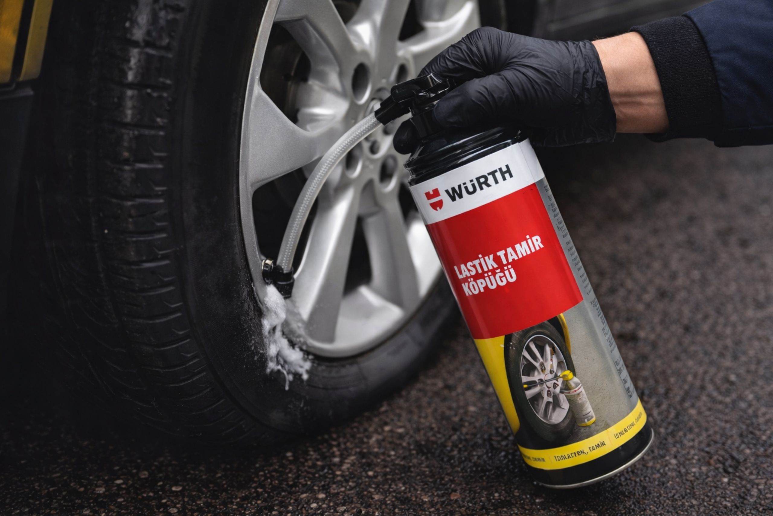 Würth Lastik Tamir Köpüğü 300 ML, araç lastiklerinde meydana gelen küçük delinmeler ve hava kaçakları için geliştirilmiş acil durum onarım spreyidir. Özel köpük formülü sayesinde lastiği janttan sökmeden hızlı şekilde geçici onarım yapılmasına yardımcı olur.